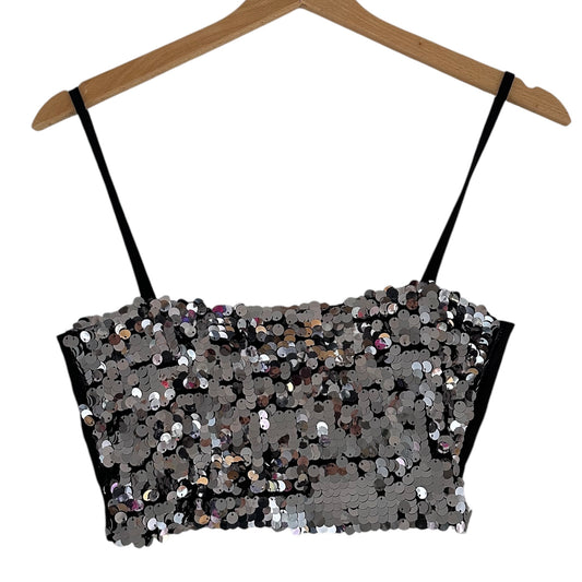 Top tiras lentejuelas plateado - Talla S